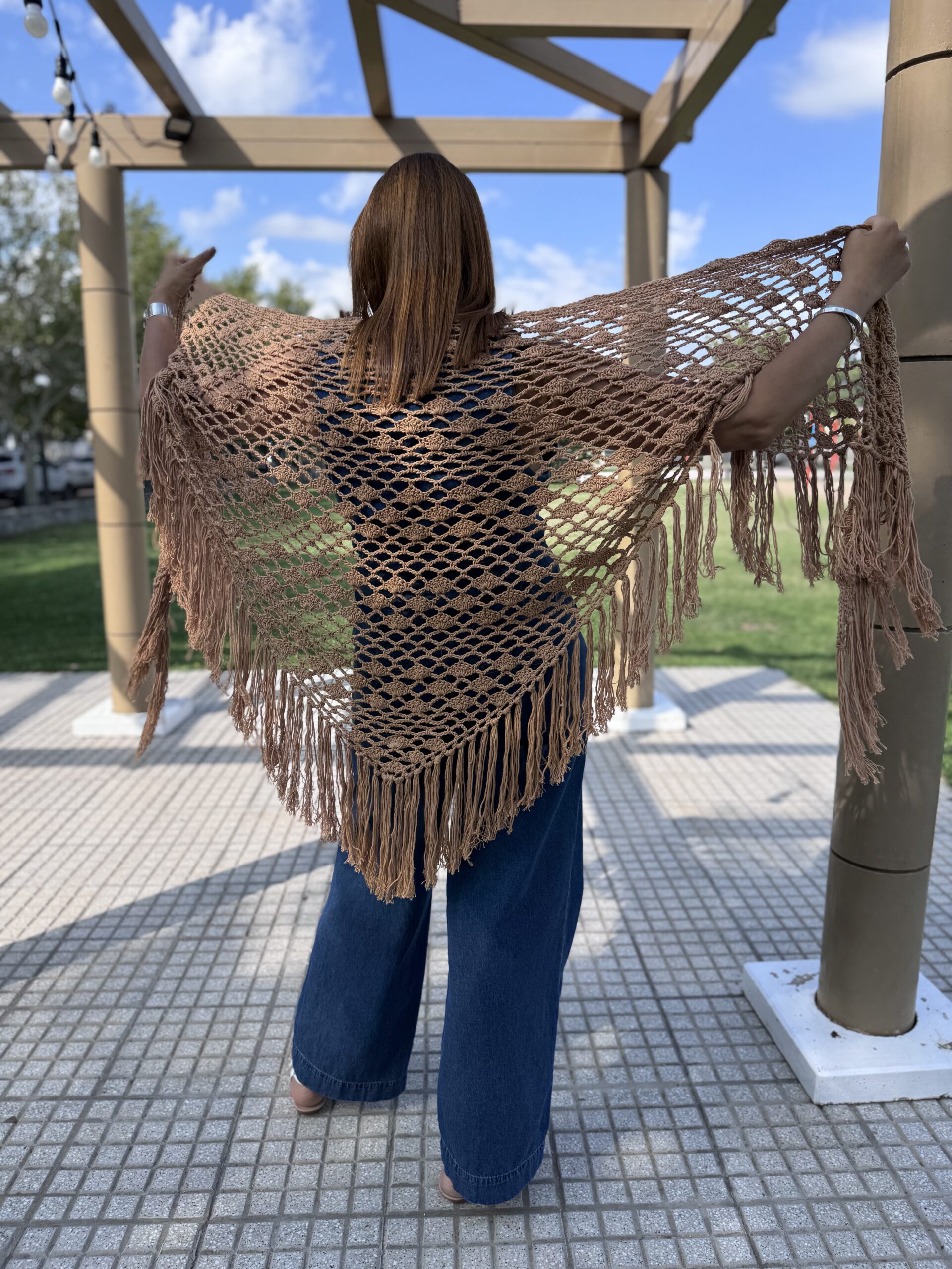 Estructura circular, un diseño diferente y protagonista, que se teje desde el centro hacia afuera, creando una prenda envolvente con caída y movimiento. Un nuevo lanzamiento que se las trae!
