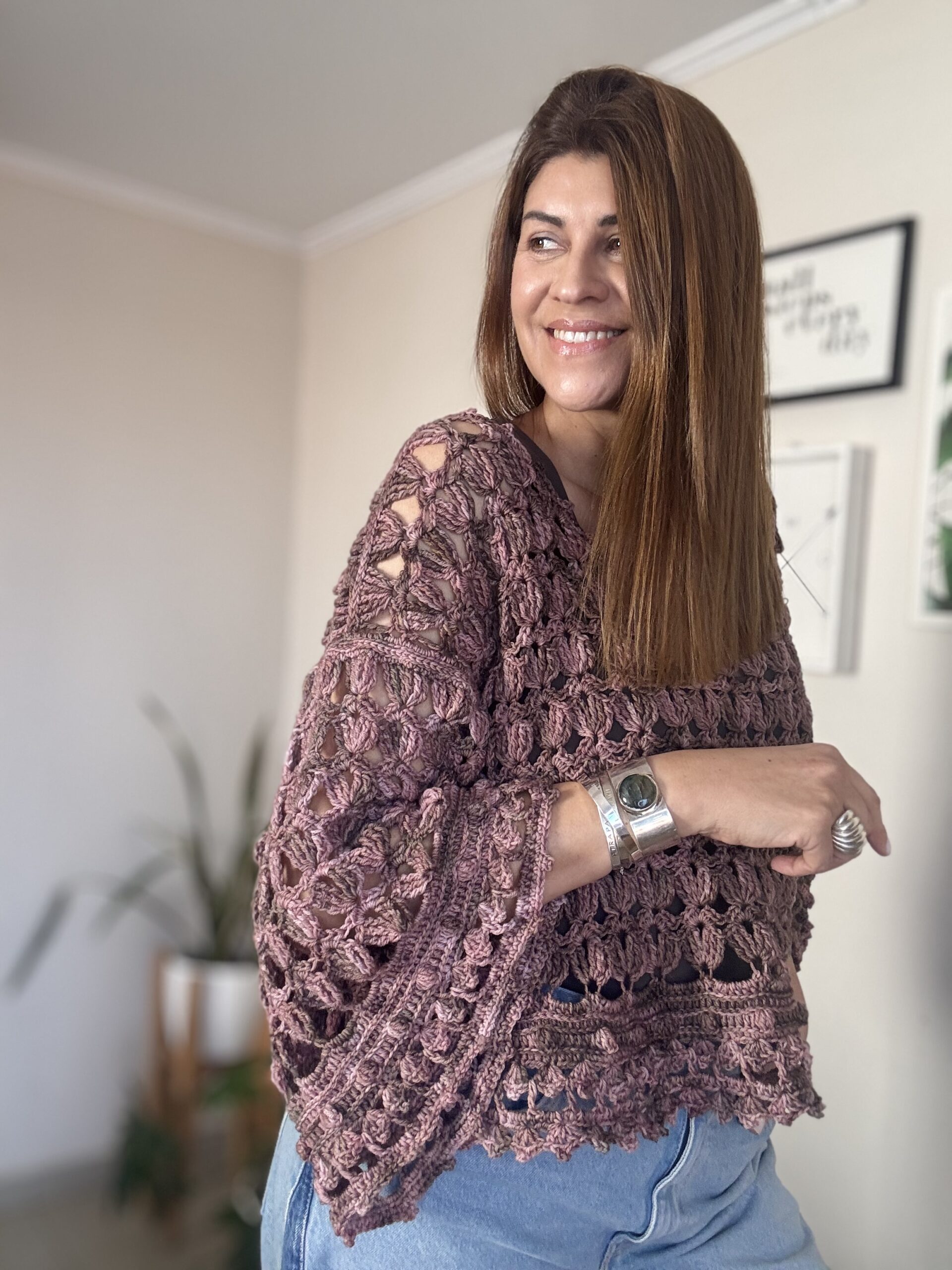 Lo mejor es que se adapta a todos los estilos y cuerpos. Podés usarlo como prenda protagonista en capas superpuestas durante el frío, o bien transformarlo en una versión liviana para el verano simplemente cambiando el hilado. Una misma base que se reinventa para acompañarte en distintas estaciones y ocasiones.
